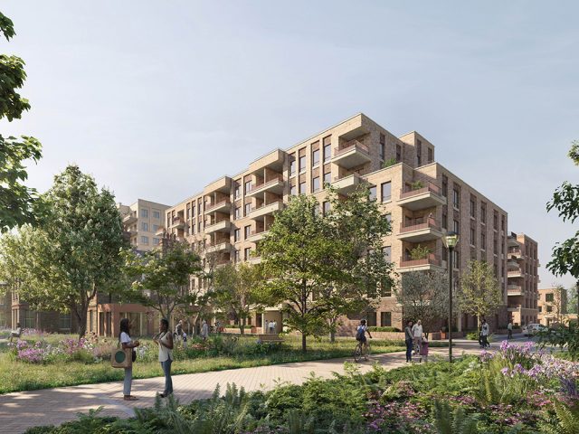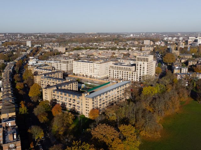 Hackney: 2020 - A prominent mixed-use residential building and low-rise homes within the Colville Estate Masterplan