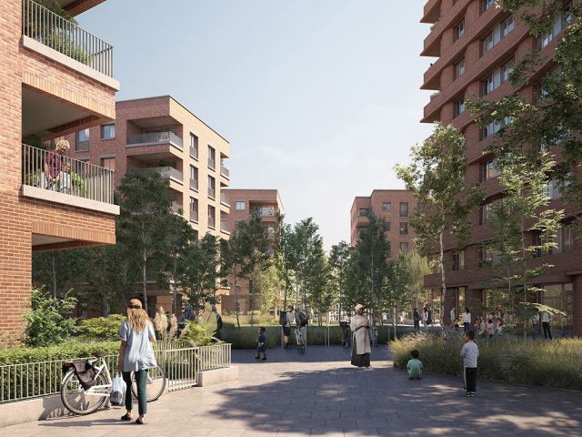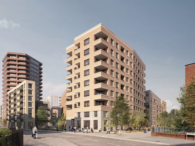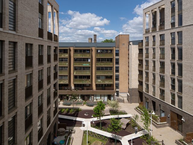 Hackney: 2020 - A prominent mixed-use residential building and low-rise homes within the Colville Estate Masterplan
