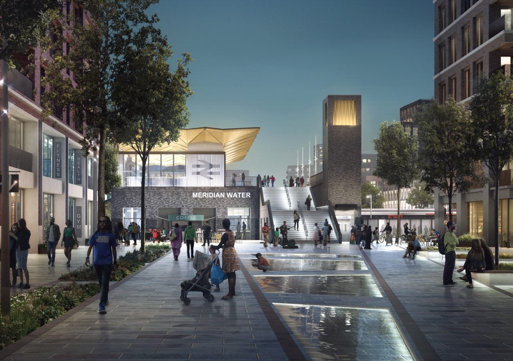 The new Meridian Water Station replaces the existing Angel Road Station, relocating it within the heart of the masterplan. Angel Road is currently situated in the middle of an industrial estate and is poorly served and difficult to access, making it London’s fourth quietest station. At just 17 minutes direct to Stratford, 24 minutes to Liverpool Street, 22 minutes to London City Airport and 43 minutes to Heathrow, the new station will provide a focus and gateway to an accessible, well-connected neighbourhood.