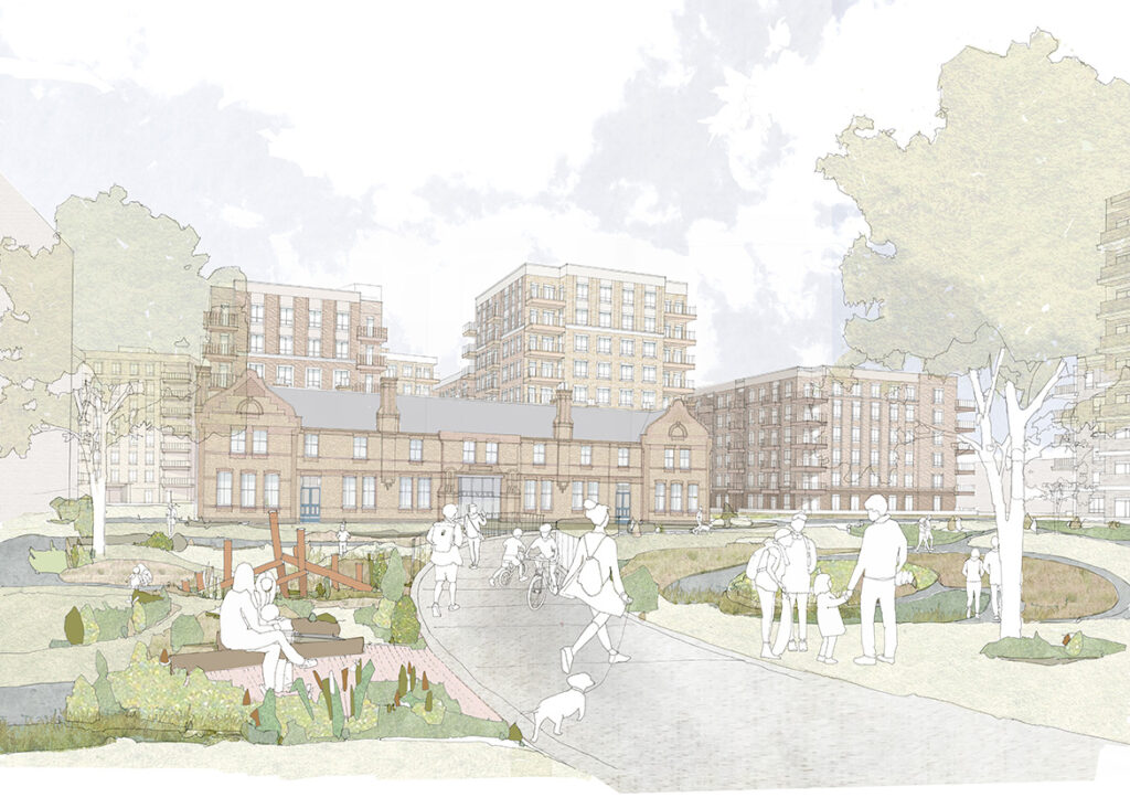 The next phases of the St. Ann’s Masterplan in Tottenham have been granted planning approval. Phases 1B and 2 comprise 464 new homes across nine apartment buildings and fourteen family houses, ranging in height from three to nine storeys. 73% of the new homes will be at affordable tenures, including 58 homes for a local Community Led Housing group.