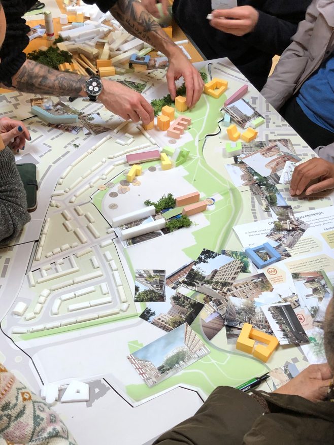 In our approach, an important focus has been how to engage effectively with such a large community and provide an inclusive platform to discuss the future of the neighbourhood. Through a programme of co-design workshops, we worked with over 600 households to create a masterplan with two scenarios; one for strategic infill and one for full redevelopment. In each, residents used large adaptable models to test different options for layouts, massing, building types and landscaping. To extend our reach, a digital engagement strategy has formed a critical part of our approach, with online tools such as website and videos used to keep residents informed.