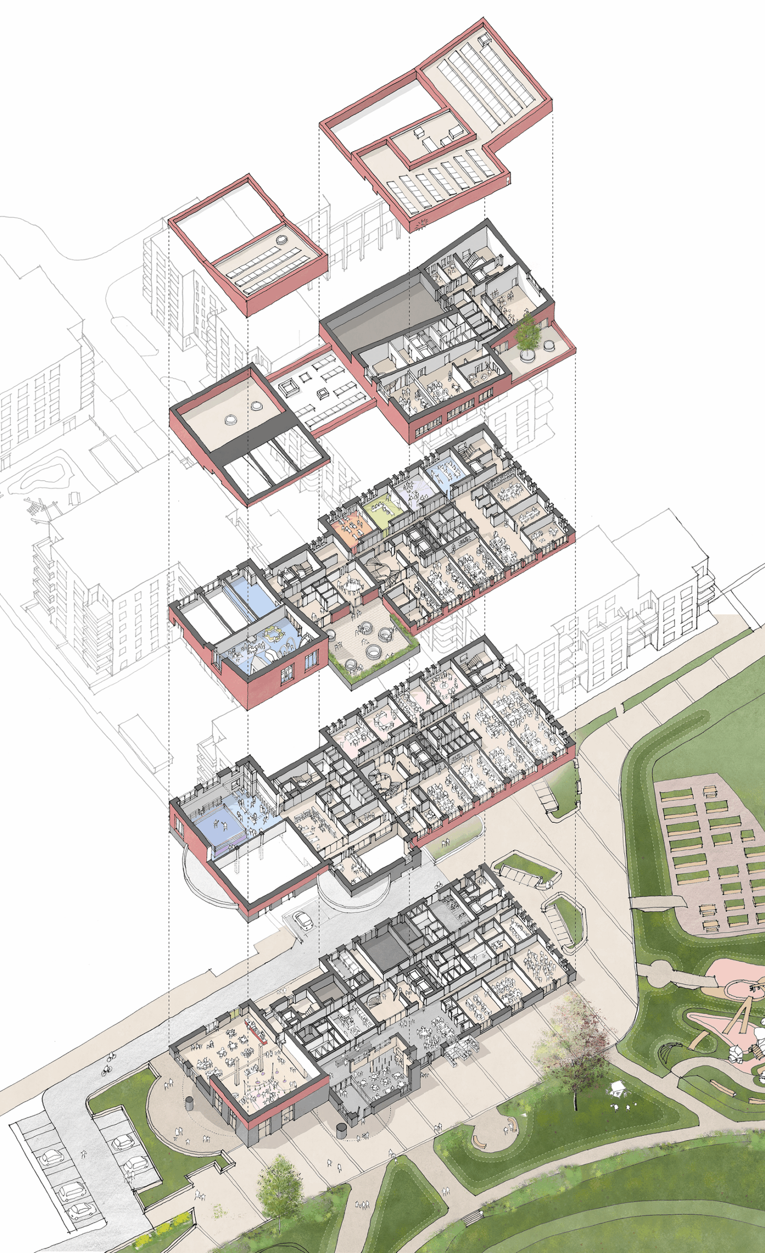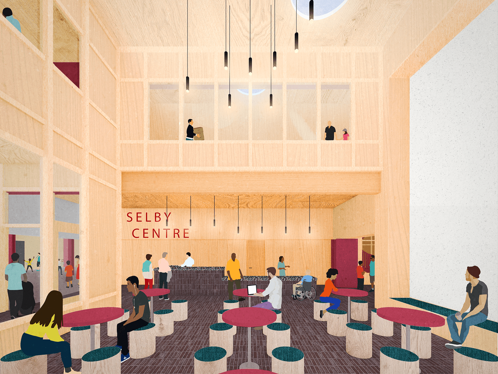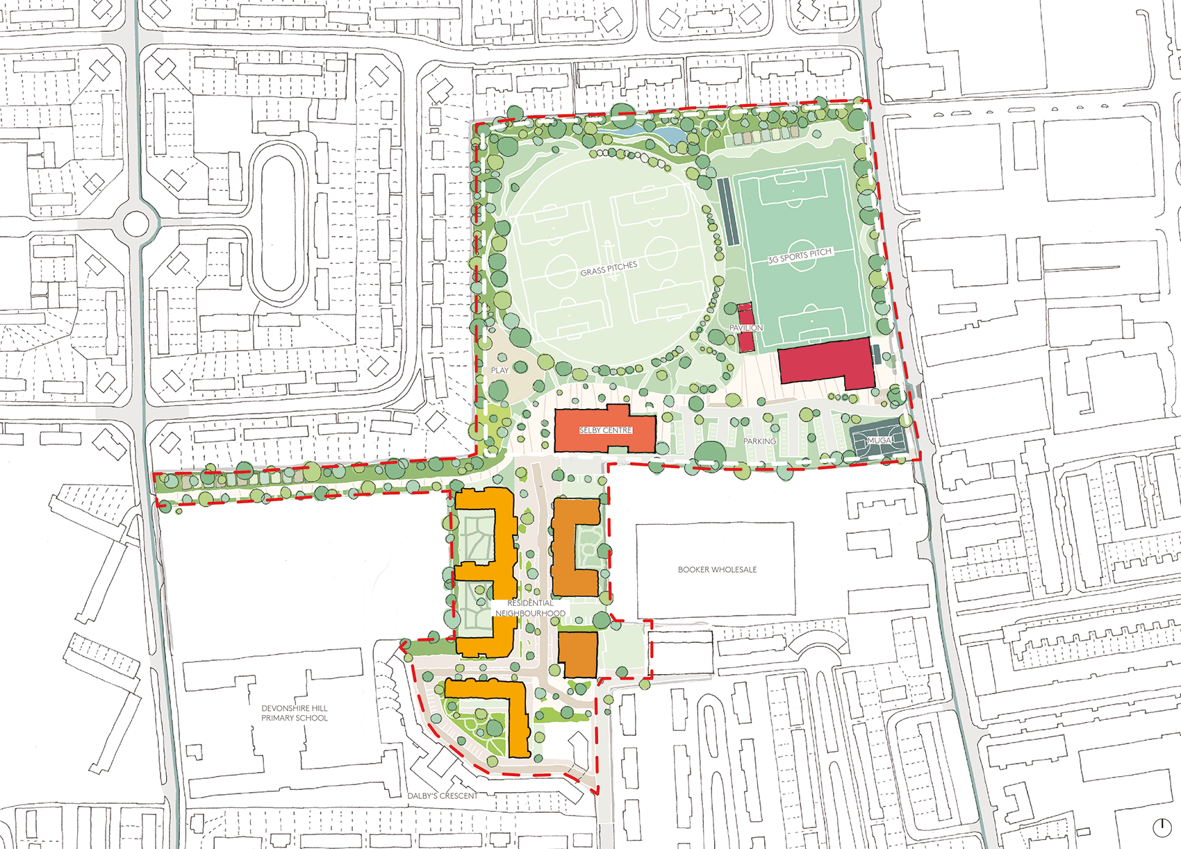 The Centre has a longstanding role as a service provider and a pillar of local identity and culture for the area. Currently situated in an outdated school building, the facilities provide space for local groups and businesses. The masterplan relocates the Selby Centre to a key location at Bull Lane playing fields, freeing up the old school site for 202 new council rent homes, directly addressing local affordable housing need.